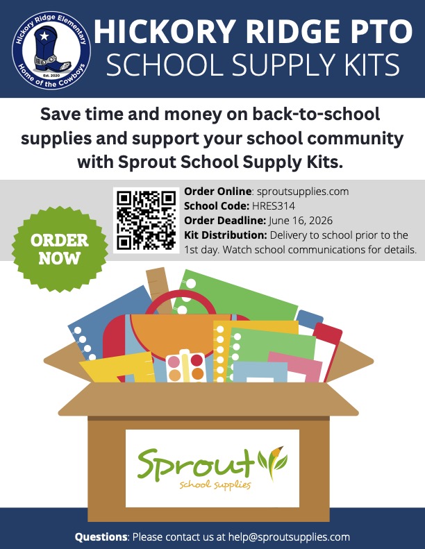 Simplify Your Back-to-School SeasonHi Hickory Ridge Families,Save time and money while supporting our school community! The Hickory Ridge PTO is excited to partner with Sprout School Supplies to pr...